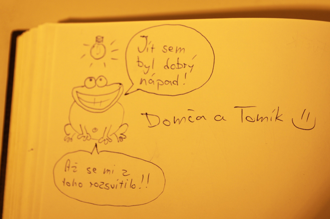„Jít sem byl dobrý nápad!“ – takto zhodnotili návštěvu Technického a dokumentačního muzea pražské energetiky v průběhu letošní Pražské muzejní noci návštěvníci Domča s Tomíkem. Prostřednictvím žabáka nám to sdělili milým zápisem a poděkováním do návštěvnické knihy.