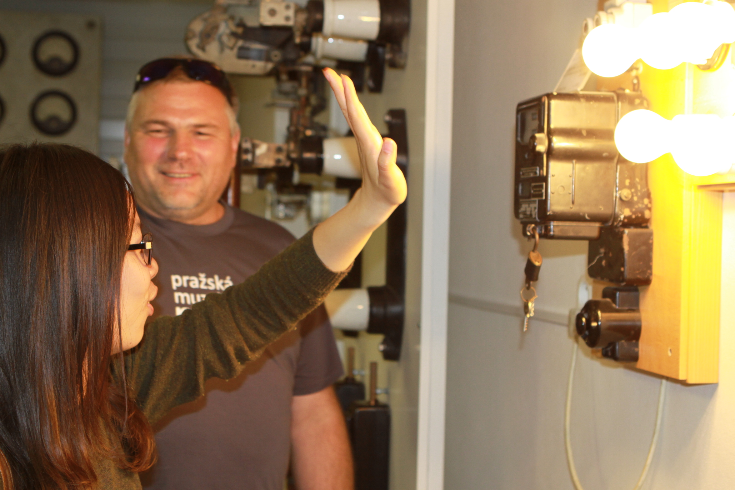 A díky tomu, že se kolegům z PREdi pro letošní rok opět podařilo obnovit provoz mincovního elektroměru, mohli jsme zájemcům předvádět „zázrak“ v podobě chvilkového rozsvícení několika žárovek vhozením mince. Takto jsme kromě našich spoluobčanů zaujali i exotickou čtyřčlennou návštěvu mladých studentů až z Tchaiwanu, kteří v Praze studují. A protože jsme letos do muzea doplnili i obrazovou projekci v podobě smyček o historii i současnosti Skupiny PRE, tak ještě většího ohlasu se u nich dočkalo sledování černobílého filmu o počátcích elektrifikace Prahy. Tito zástupci technologicky vyspělé země, která dává světu moderní (a samozřejmě barevné) televizory a další zobrazovací techniku, tak viděli nejen historické záběry našeho města, ale možná spatřili svůj vůbec první černobílý film? Každopádně patřili před televizní obrazovkou mezi nejvytrvalejší diváky…