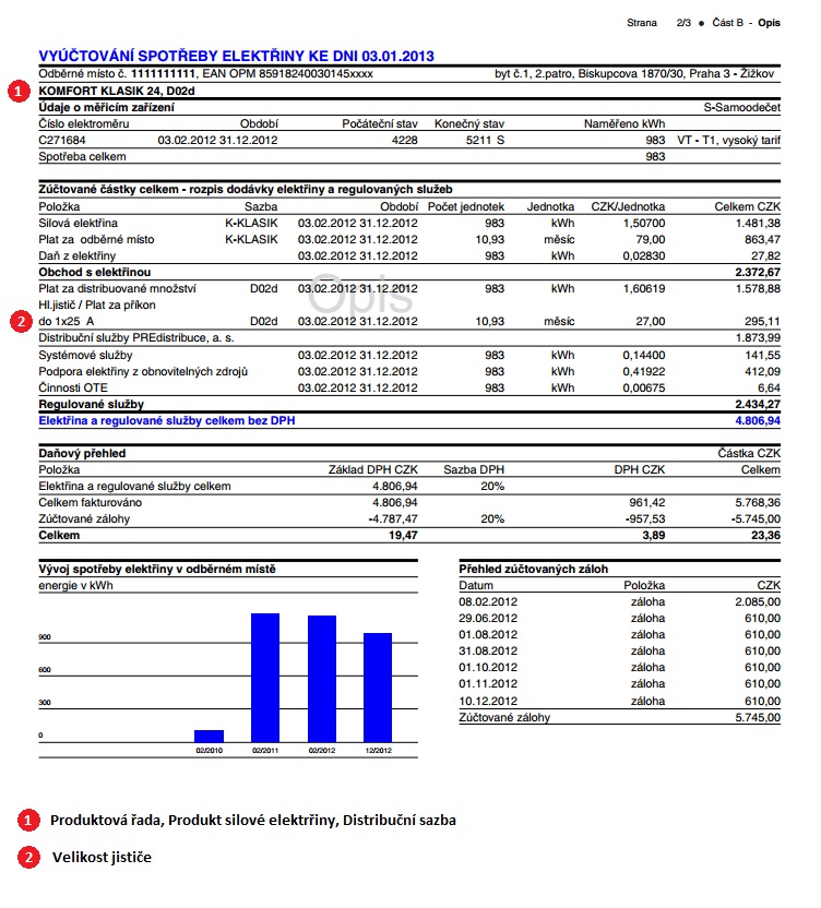 Potvrzení nákladů za elektřinu